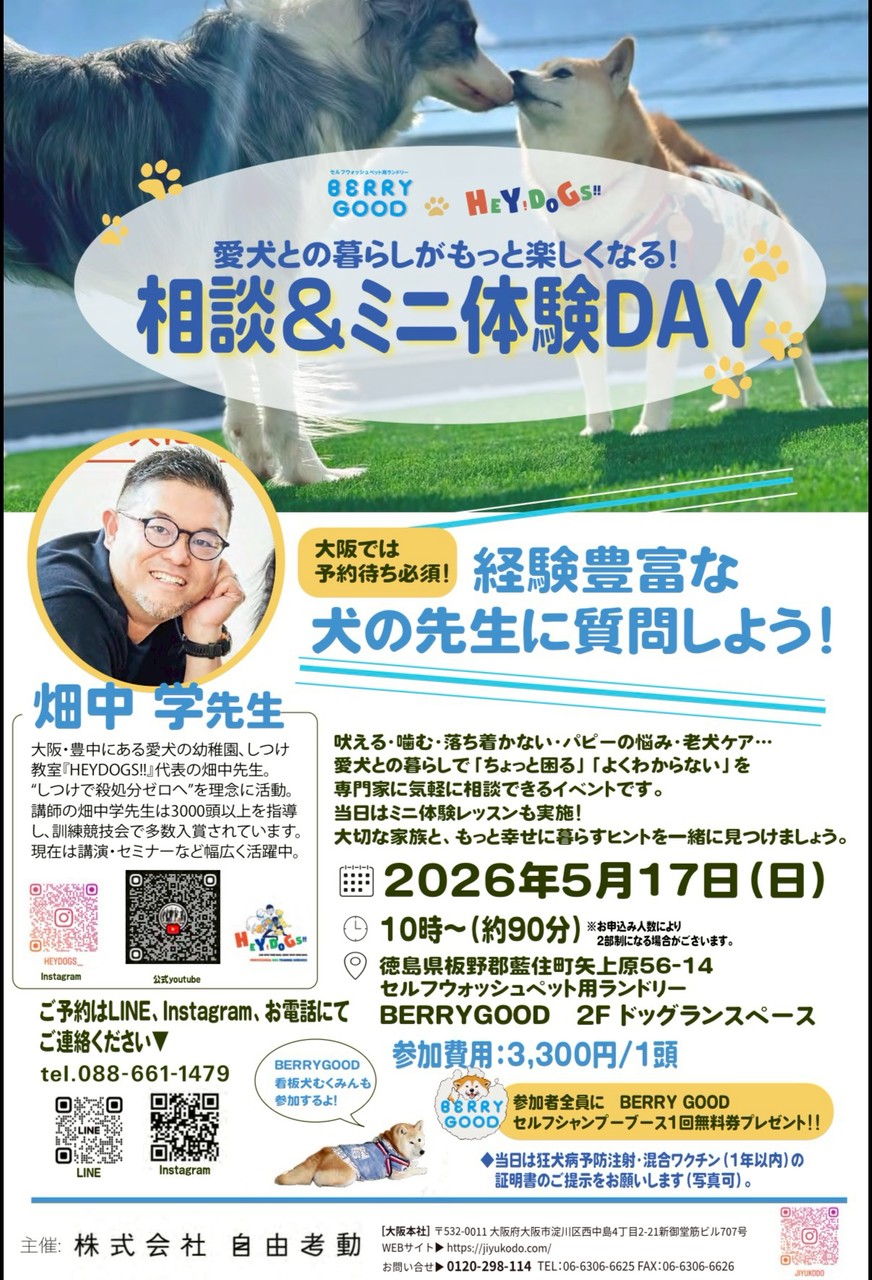 【5/17開催】愛犬との暮らしがもっと楽しくなる!「相談&ミニ体験DAY」のお知らせ